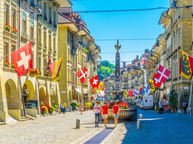 Chiêm ngưỡng những ngôi nhà theo kiến trúc Broque và Gothic. Du khách có thời gian tự do chụp hình, mua sắm đồ lưu niệm, đồng hồ Thụy Sĩ.