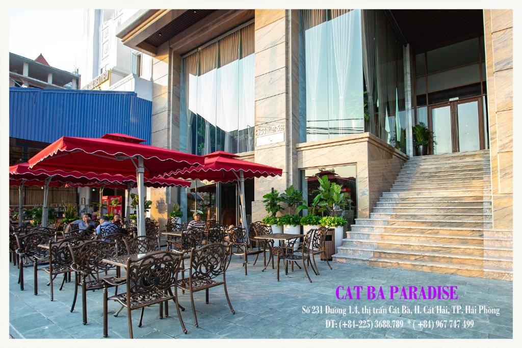 Nằm giáp biển, Cat ba Paradise Hotel – Sky Bar & Massage cung cấp chỗ nghỉ 4 sao ở Đảo Cát Bà, đồng thời có hồ bơi ngoài trời, khu vườn và phòng chờ chung. Chỗ nghỉ này có các tiện nghi như sân hiên, nhà hàng, cũng như quầy bar. Chỗ nghỉ cung cấp lễ tân 24/24, dịch vụ đưa đón sân bay, dịch vụ phòng và Wi-Fi miễn phí ở toàn bộ chỗ nghỉ. Khách sạn sẽ cung cấp cho khách các phòng được trang bị điều hòa có bàn làm việc, ấm đun nước, két an toàn, TV màn hình phẳng và phòng tắm riêng với vòi sen. Tại Cat ba Paradise Hotel – Sky Bar & Massage, mỗi phòng đều được thiết kế có ga trải giường và khăn tắm. Hằng ngày, chỗ nghỉ có các lựa chọn thực đơn buffet, kiểu lục địa hoặc kiểu Mỹ cho bữa sáng. Các điểm tham quan nổi tiếng gần chỗ nghỉ bao gồm Bãi biển Cat Co 1, Bãi biển Cat Co 3 và Bãi biển Cát Cò 2. Sân bay gần nhất là Sân bay Quốc tế Cát Bi, cách Cat ba Paradise Hotel – Sky Bar & Massage 54 km.