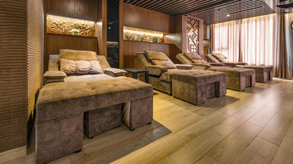 - Trẻ em phát sinh thêm dưới 5 tuổi phụ thu 100.000đ/bé/ngày, ở chung cùng bố mẹ, trong trường hợp khách yêu cầu kê thêm giường phụ, sẽ phụ thu là 400.000/giường/người/ngày